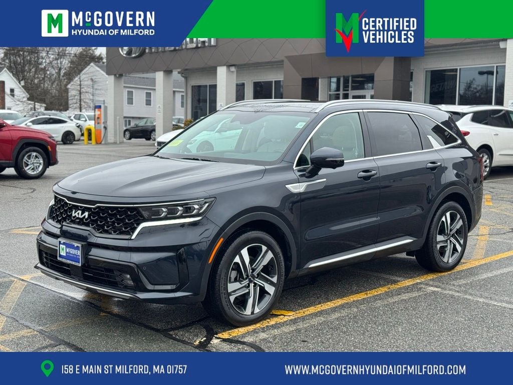 McGovern Hyundai Of Milford is proud to present this... Gravity Blue 2023 Kia Sorento Hybrid SX Prestige 1.6L I4 DGI Hybrid Turbocharged DOHC 16V LEV3-ULEV70 6-Speed Automatic AWD CARFAX One-Owner.